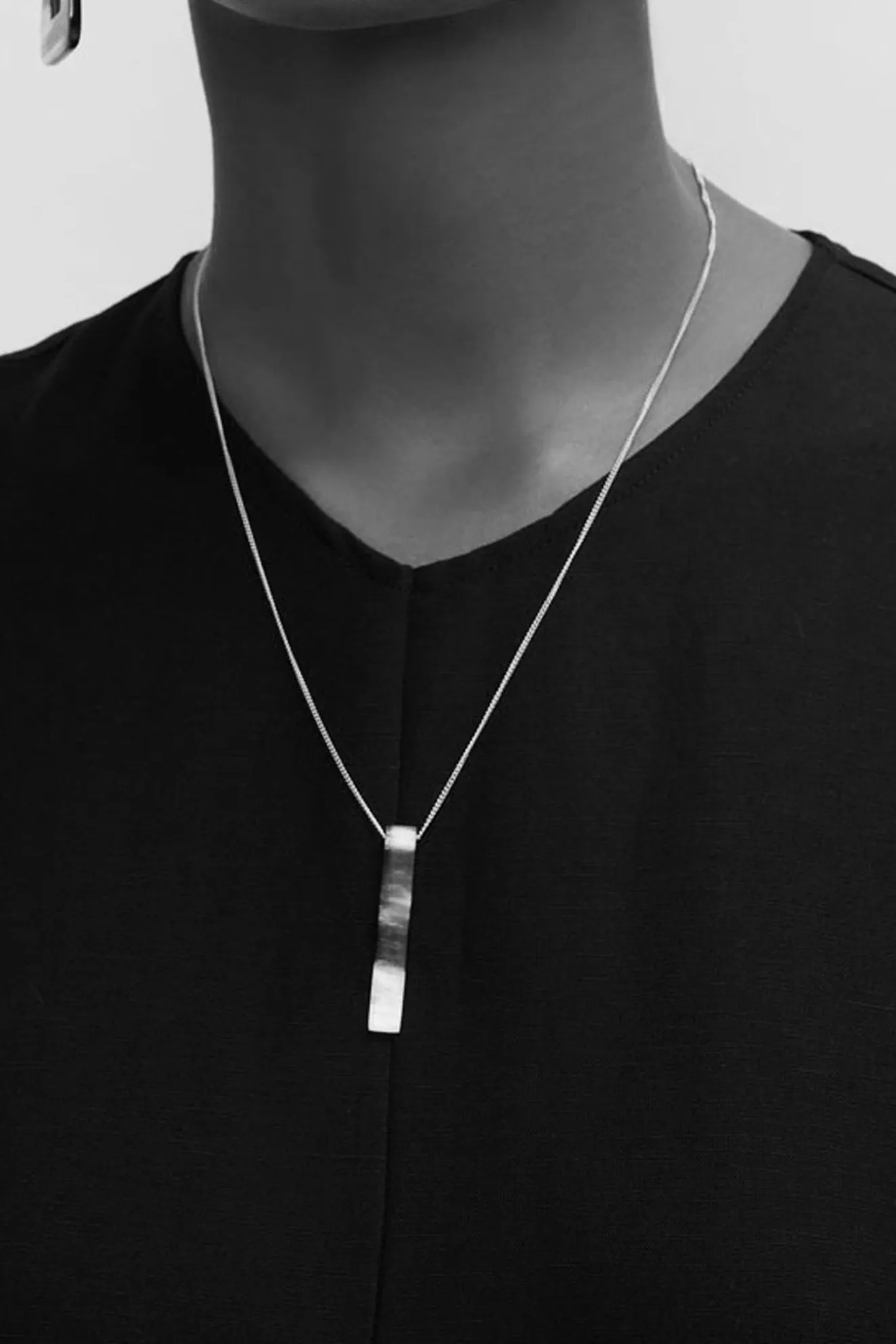 Black Horn & Sterling Silver Rectangle Pendant Necklace