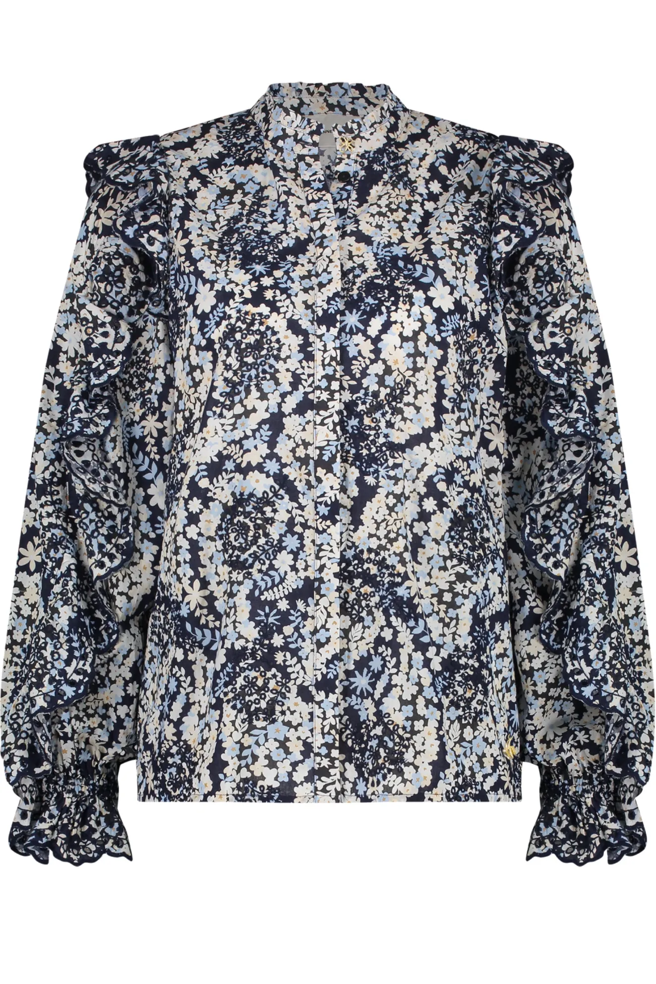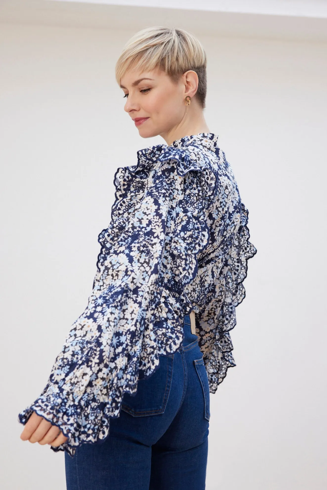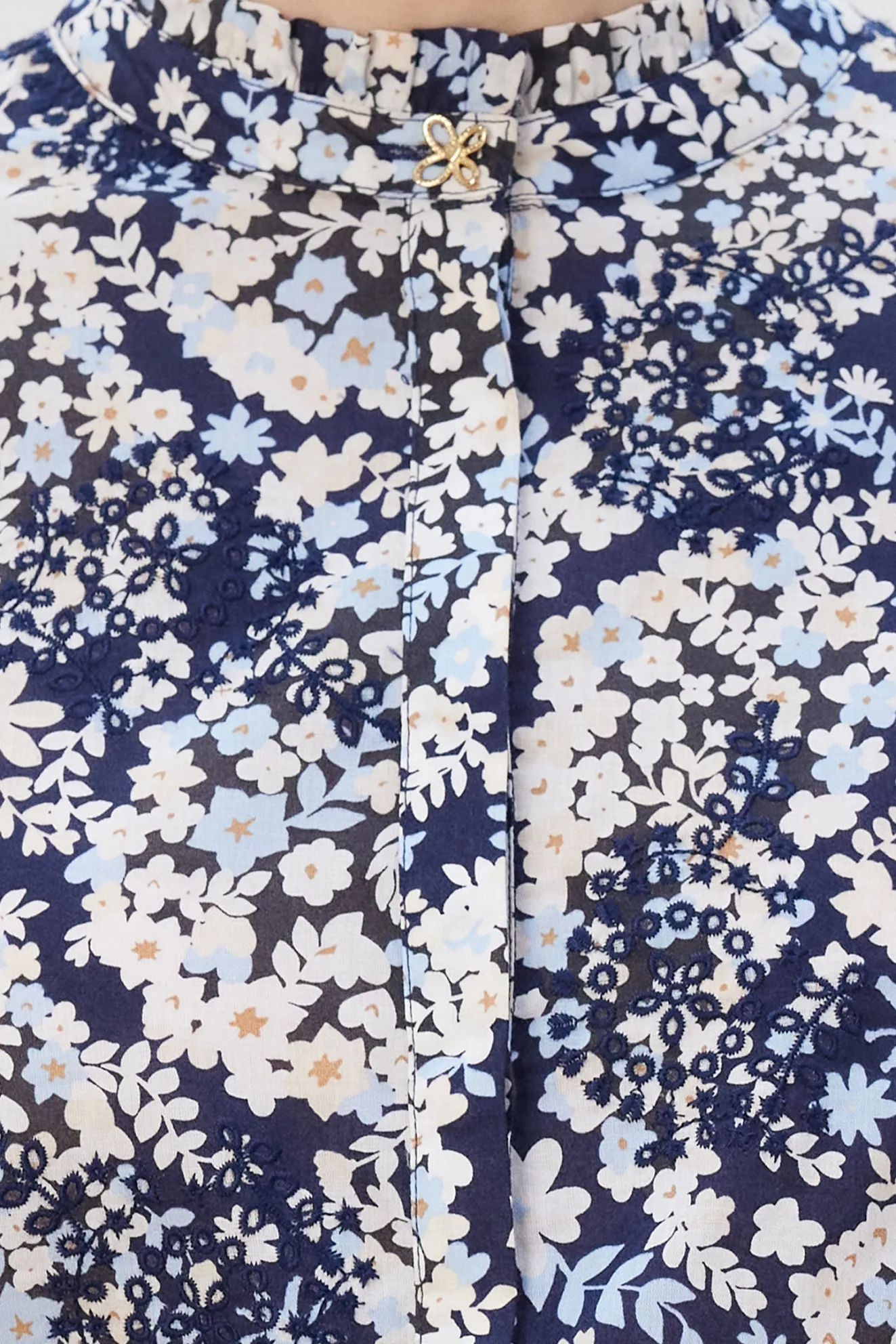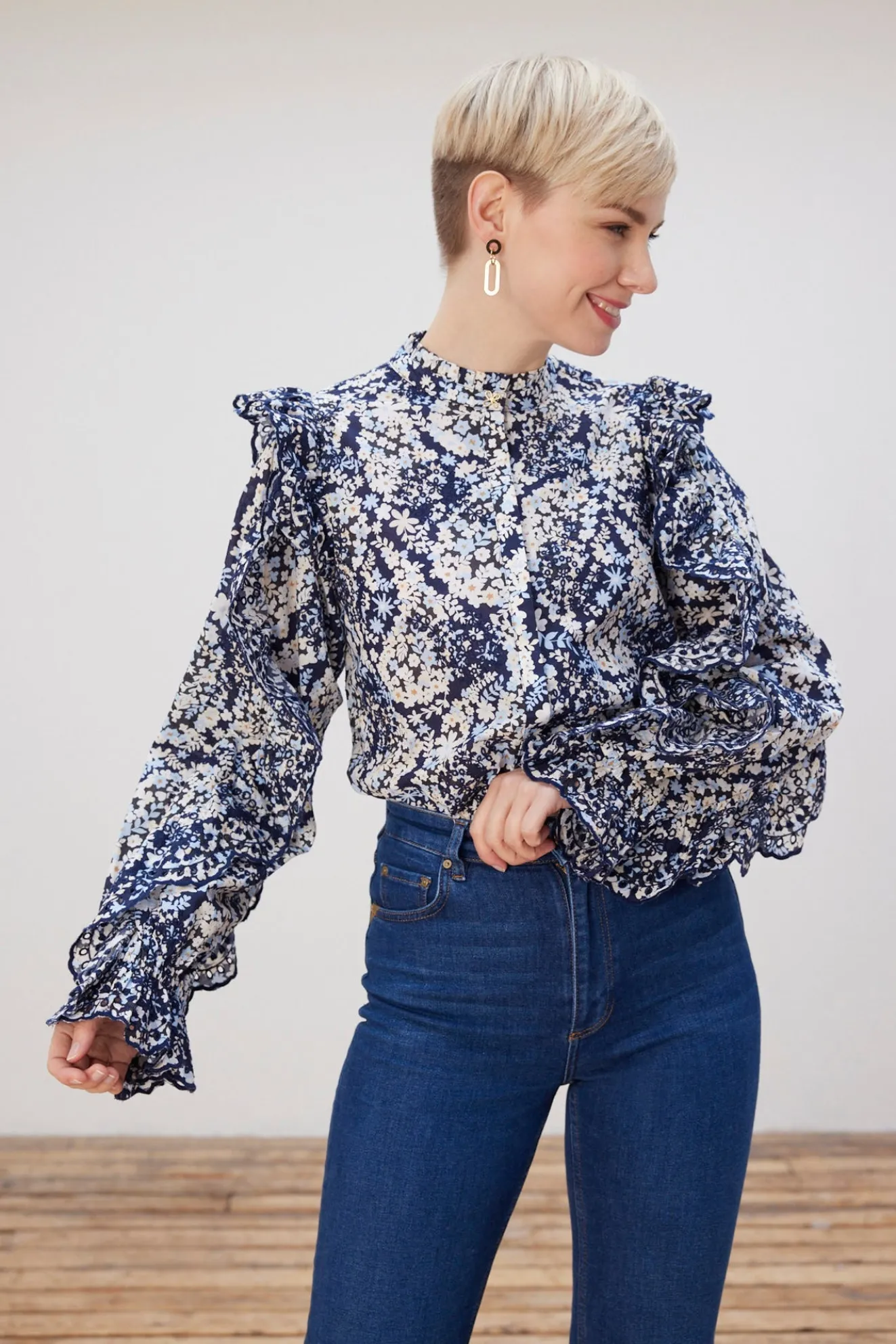 Our Best-Selling Frill Sleeve Blouse From Fabienne Chapot Is Back, This Season Reimagined As The Stunning Phaedra Blouse. Featuring Long, Fabulously Voluminous Sleeves And Openwork Details All Over, Mixed With Rich Heritage Blues And Cream Floral Print, This Statement Blouse Marries Femininity And Delicate Embroidery With Shape For A Statement Silhouette. The Pretty Cuff Detail And Beautiful Gold Buttons On The Hem And Collar Add That Final Elegant Touch.