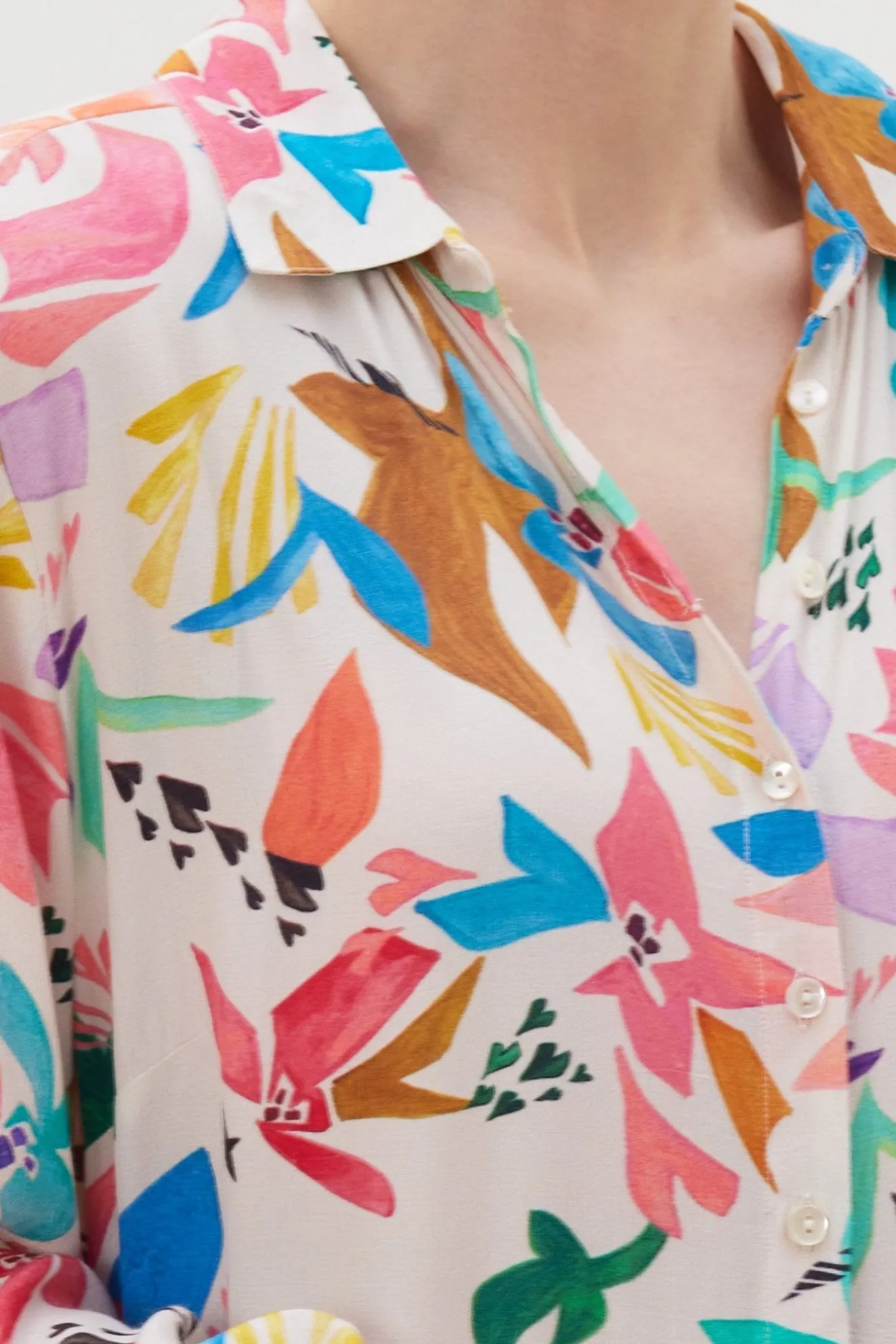 Our Sell-Out Dress By Pom Amsterdam Is Back – This Time In A Gorgeous Hand-Painted Origami Print. A Floaty Yet Flattering Silhouette, The Print Adorns A White Backdrop, The Cinched Waist Flows Into A Pleated Hem, Finished With A Collar And Front Button Closure All The Way Down Giving You A Choice Of Coverage. Style Yours With Some Beautiful Bubble Orange Hoop Earrings Adding A Pair Of Heels For A Glam Look. Throw On A Soft Knit And Sneakers For A Simple, Casual Look. A Versatile Dress That Can Be Dressed Up Or Down To Suit Any Occasion.