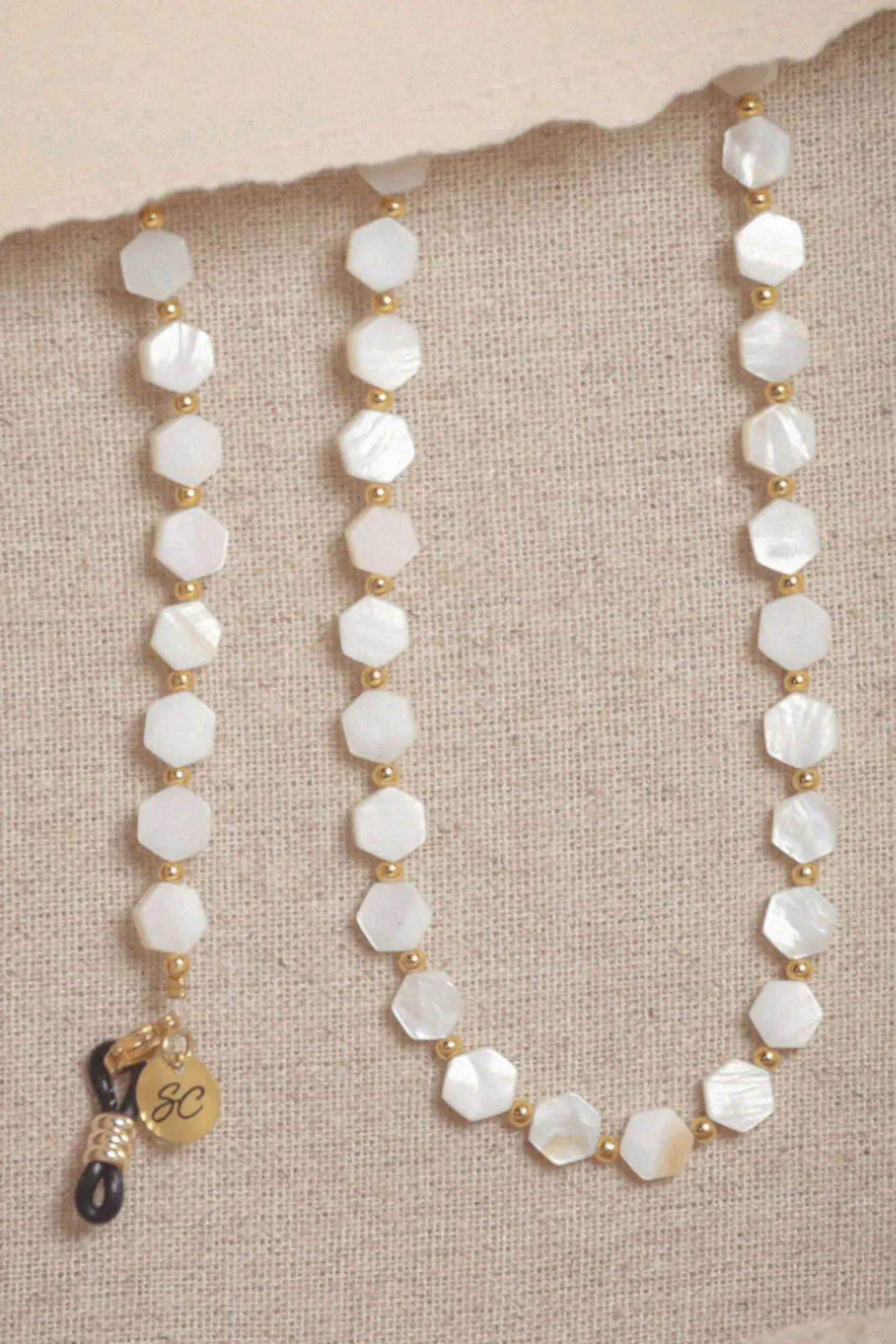 Maya By Sunny Cords Is A Sophisticated And Elegant Style, Featuring Beautiful White Hexagon Shaped Beads. The Shiny Coating With Marble Effect Shimmers Beautifully In The Sunshine, Making It The Perfect Addition To Your Summer Wardrobe. A Beautiful Gift Idea For Someone Special.